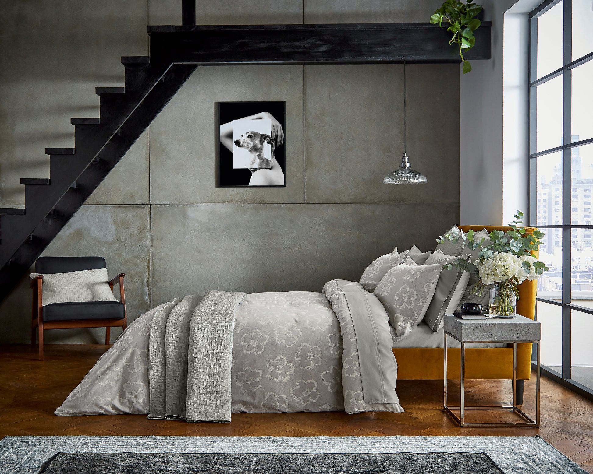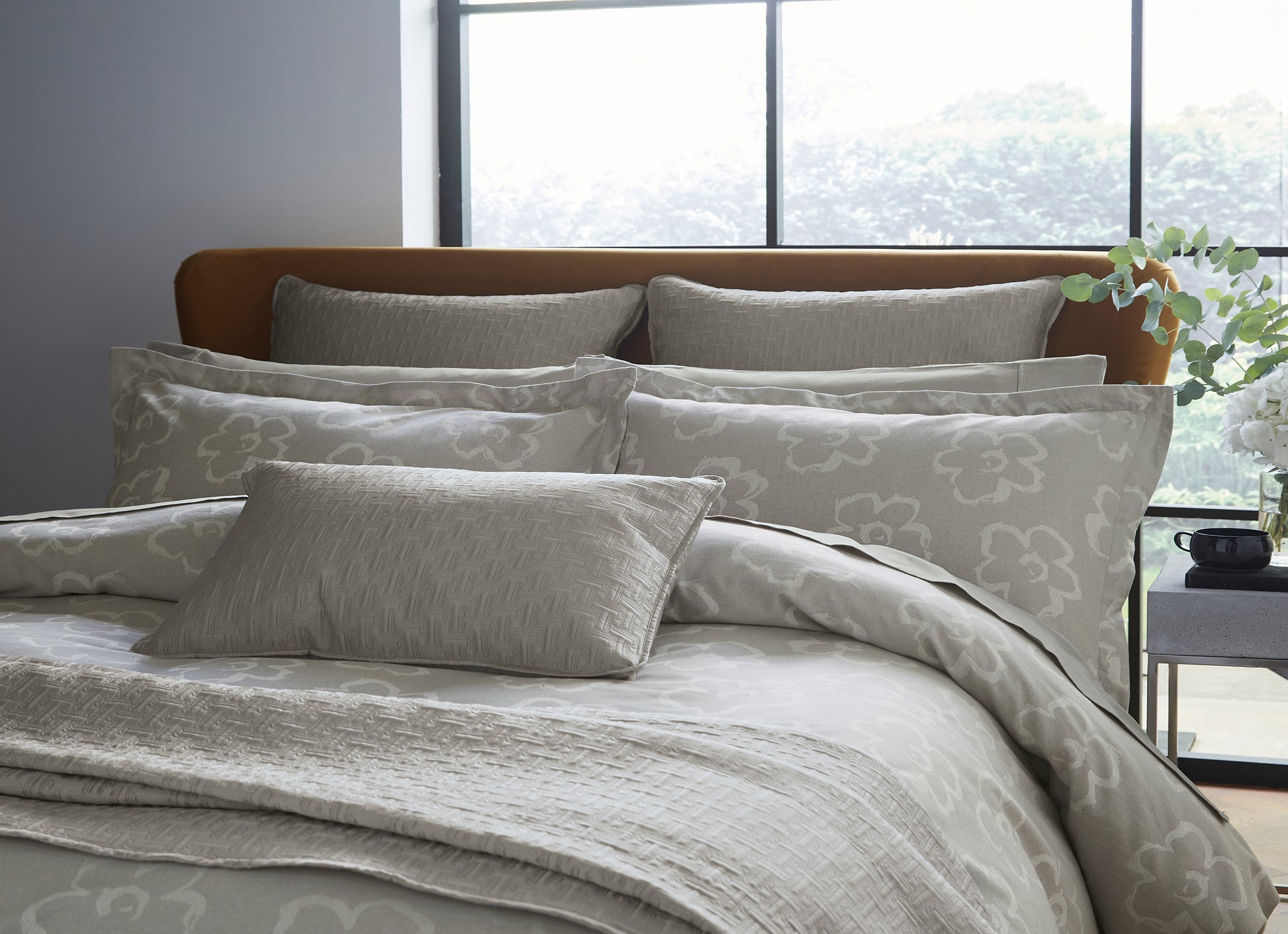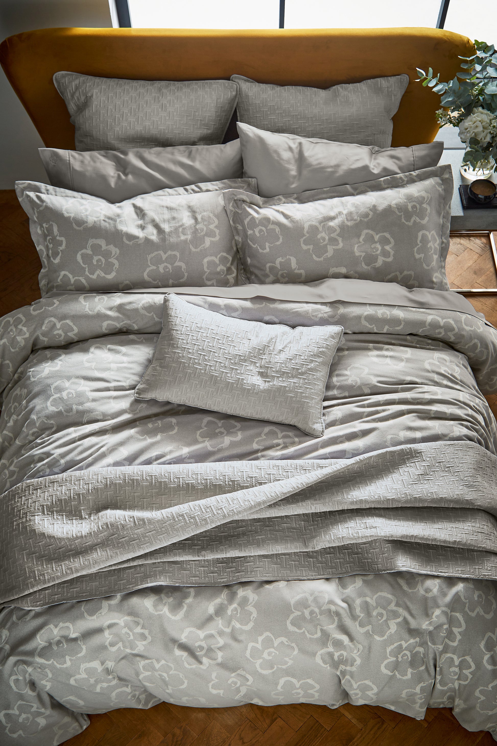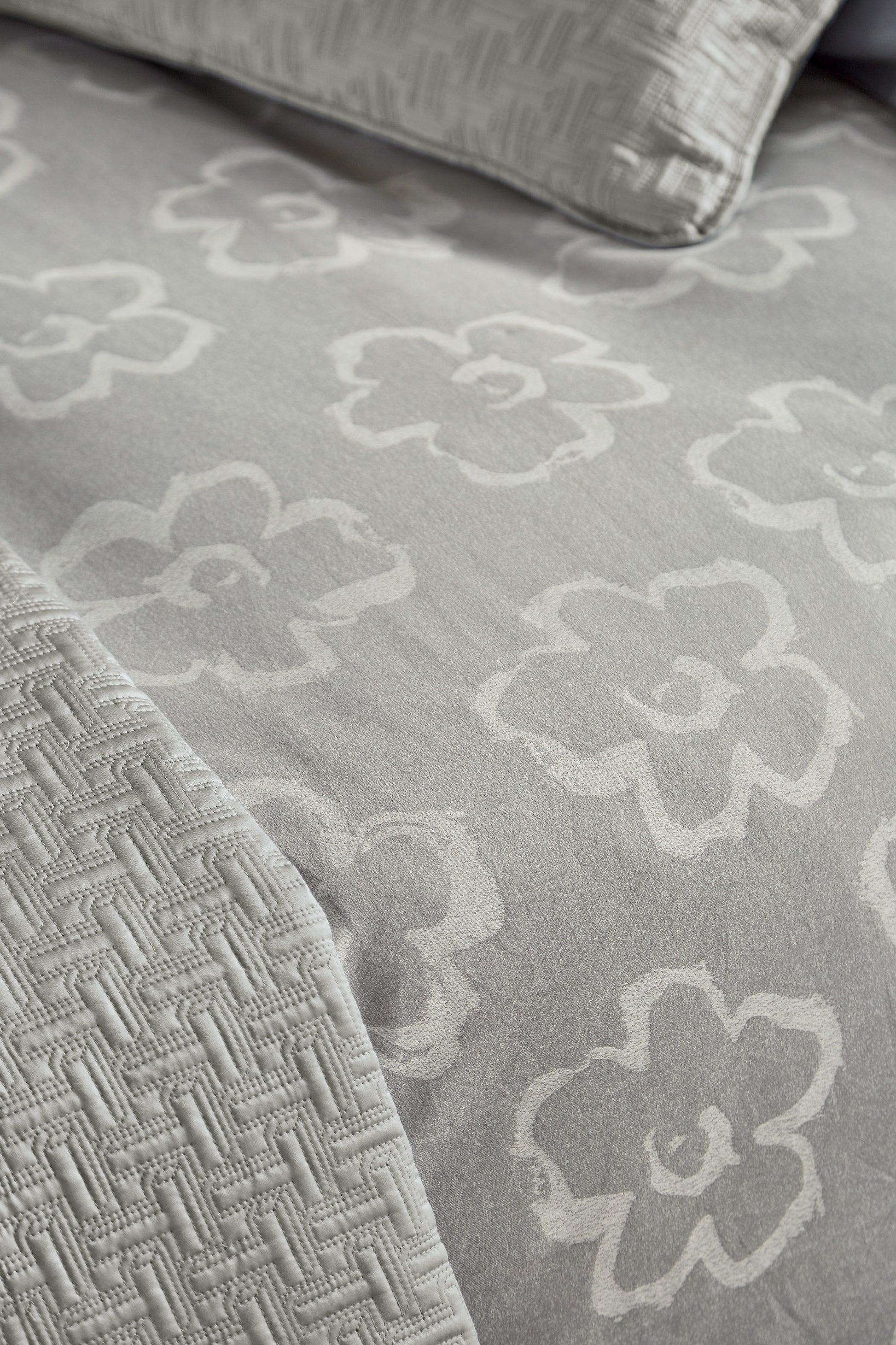 Sophisticated duvet cover with small magnolia flowers all over and it's made of jacquard woven fabric.